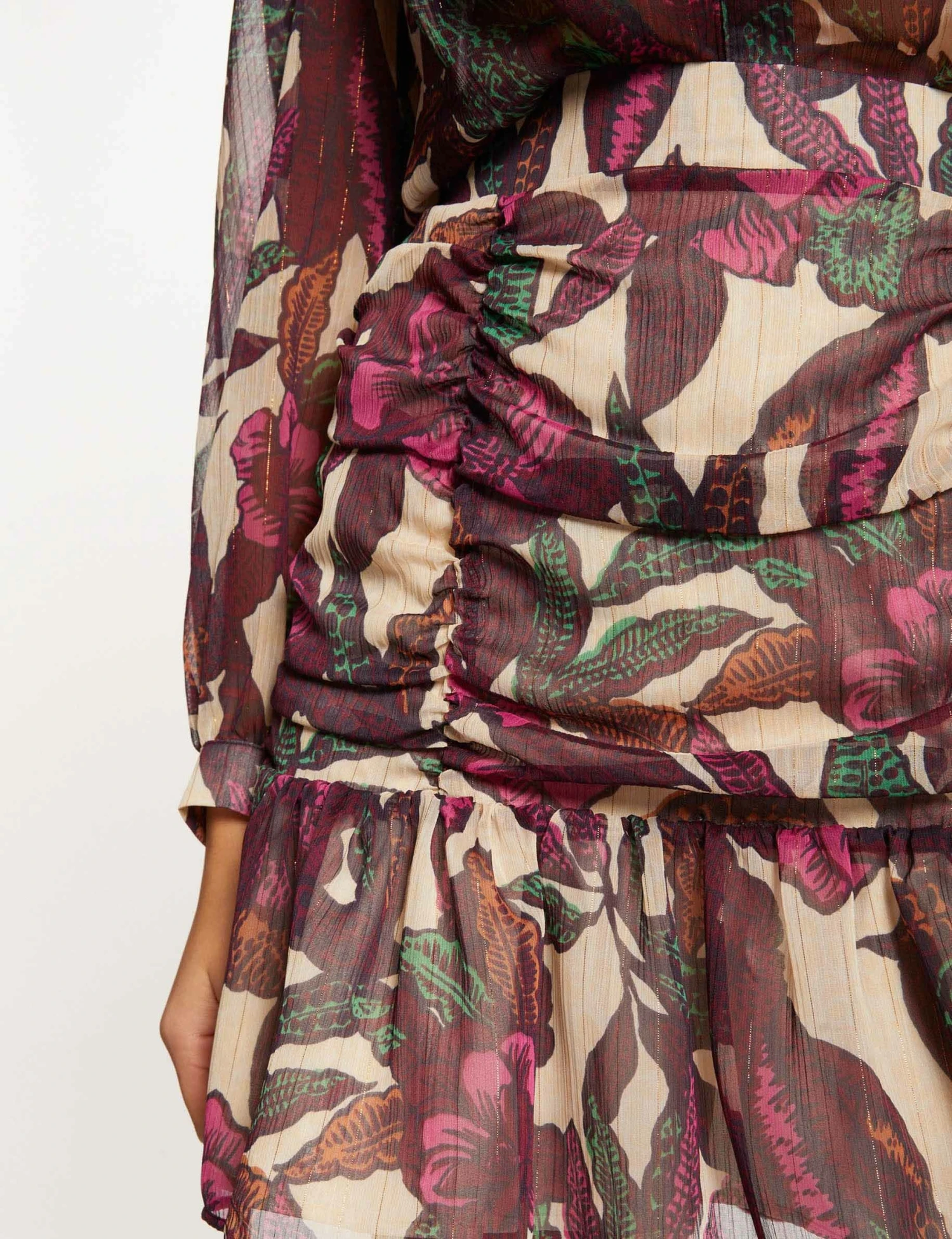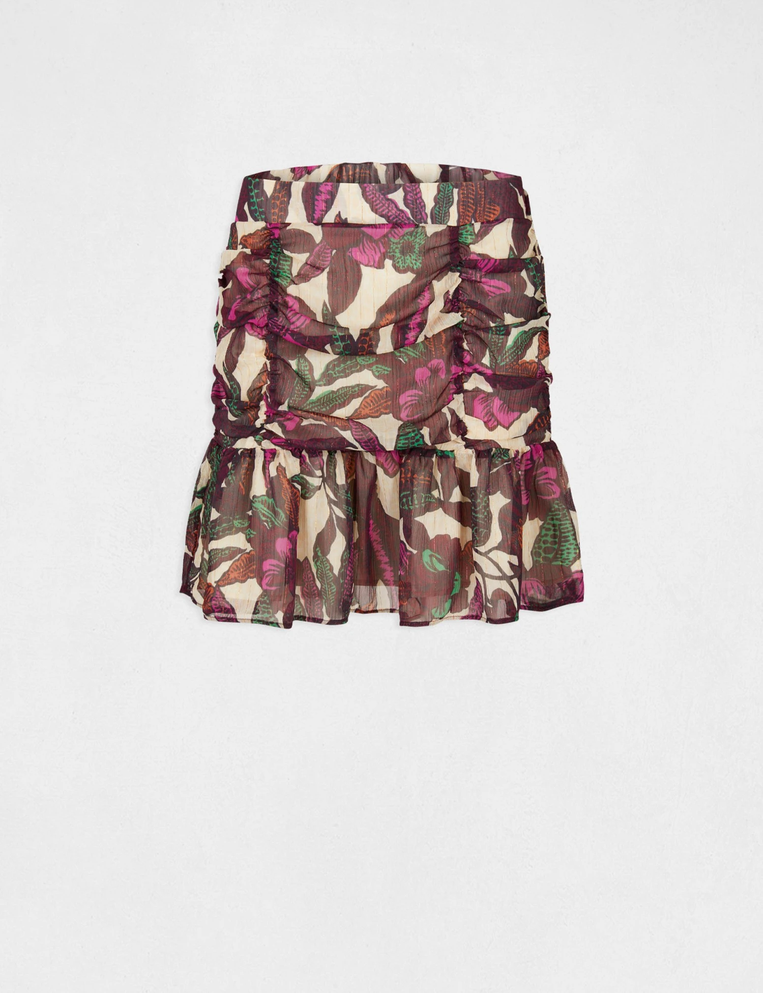 Jupe Droite à Volants Imprimé Végétal Multico Femme