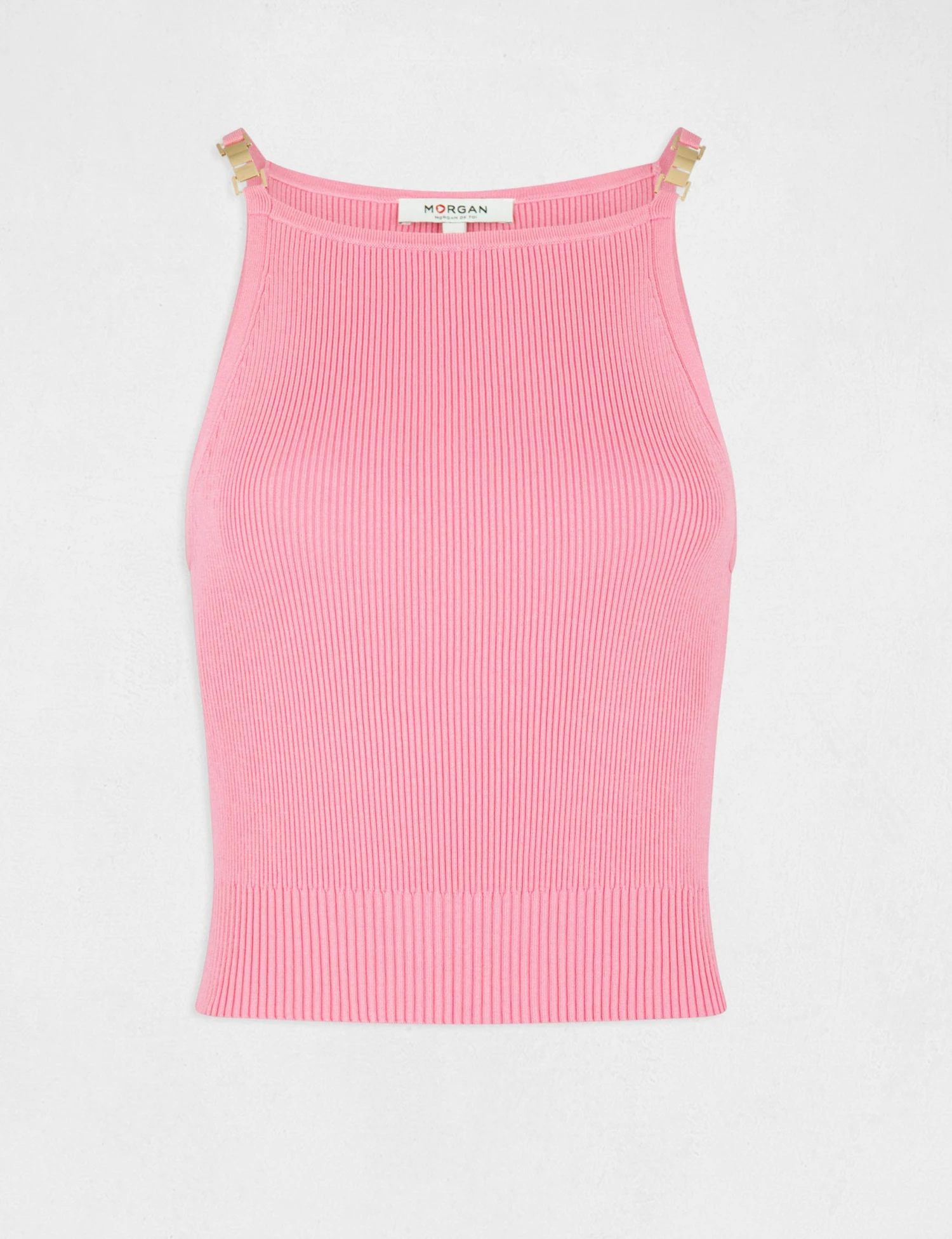 Pull Débardeur Bretelles Fines Rose Clair Femme
