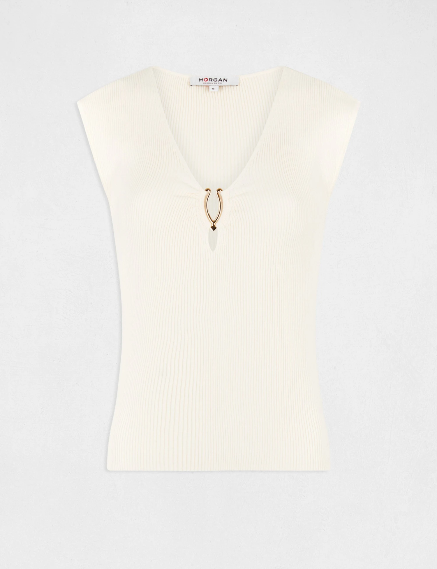 - Pull manches courtes col détail bijou